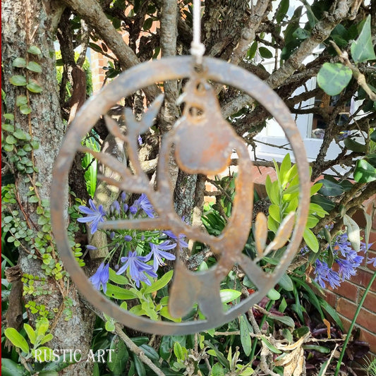 Hanging Rusty Metal Fantail Bird Decor in Circle - 200mm Diameter