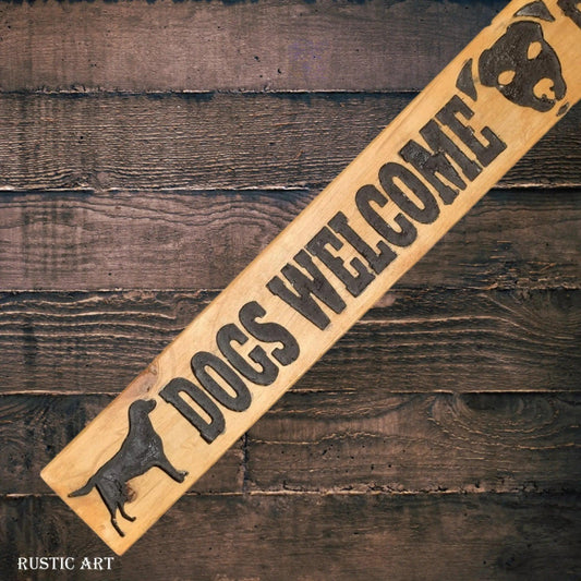 Pallet Wood outdoor Sign dogs welcome 87cm x 10cm