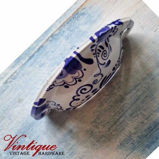 Half Moon Drawer Pull - Blue Vines 86mm -victorian design