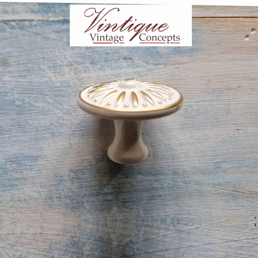 White Gold Ribbed Furniture Knob 37mm Diameter