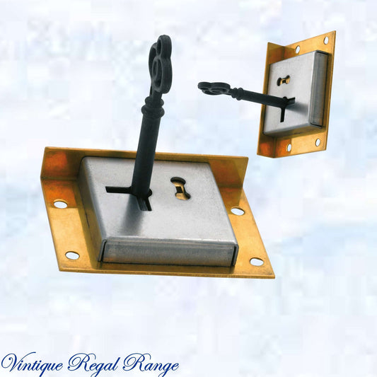 Antique polished brass Drawer Lock & Key 63W x 48mmH