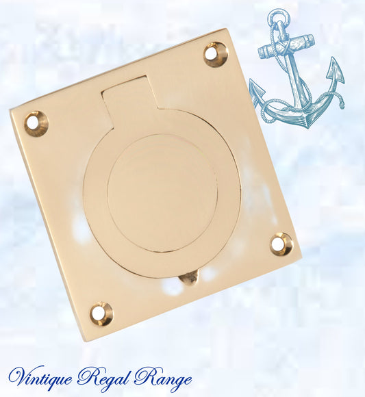 Yacht Polished Brass Ring Flush Pull door handle 63mm x 63mm
