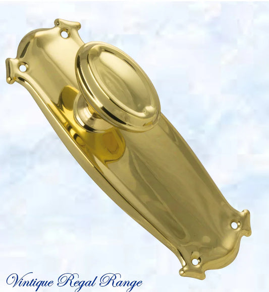 Polished Brass Chateau Door knob W/backplate 197 x 68mm