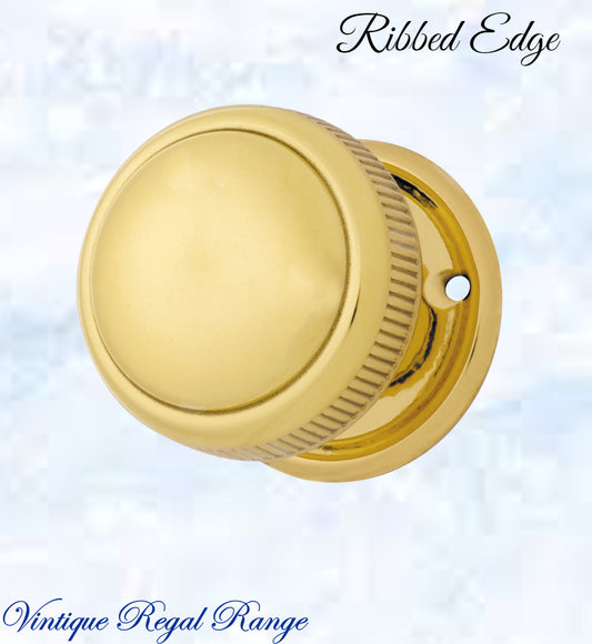 Polished Brass Victorian Grooved Door Knob 51mm dia