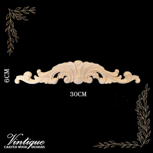 Leafy Scallop carved wood Centre Applique 30cm x 8cm