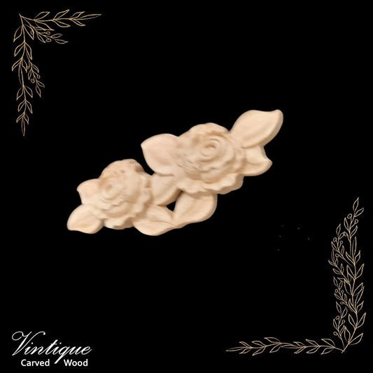 Victorian carved Wooden Applique Twin Rose Centre Carved 16cm x 7cm
