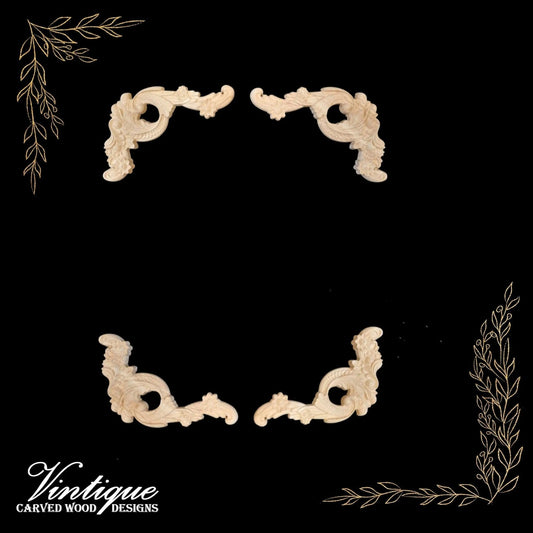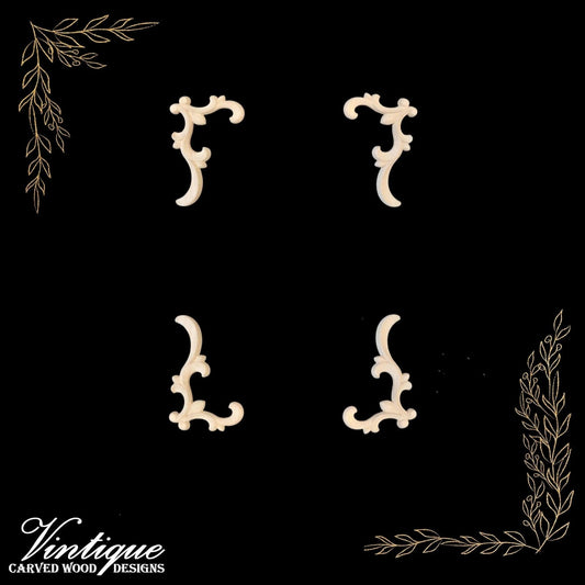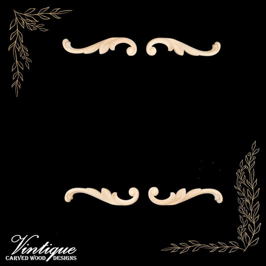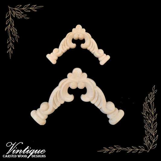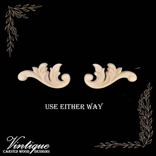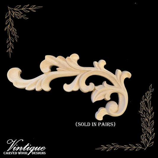 Windsor Scrolls Wood Appliques - Carved Wood Accents 12cm x 8cm (Sold in Pairs)