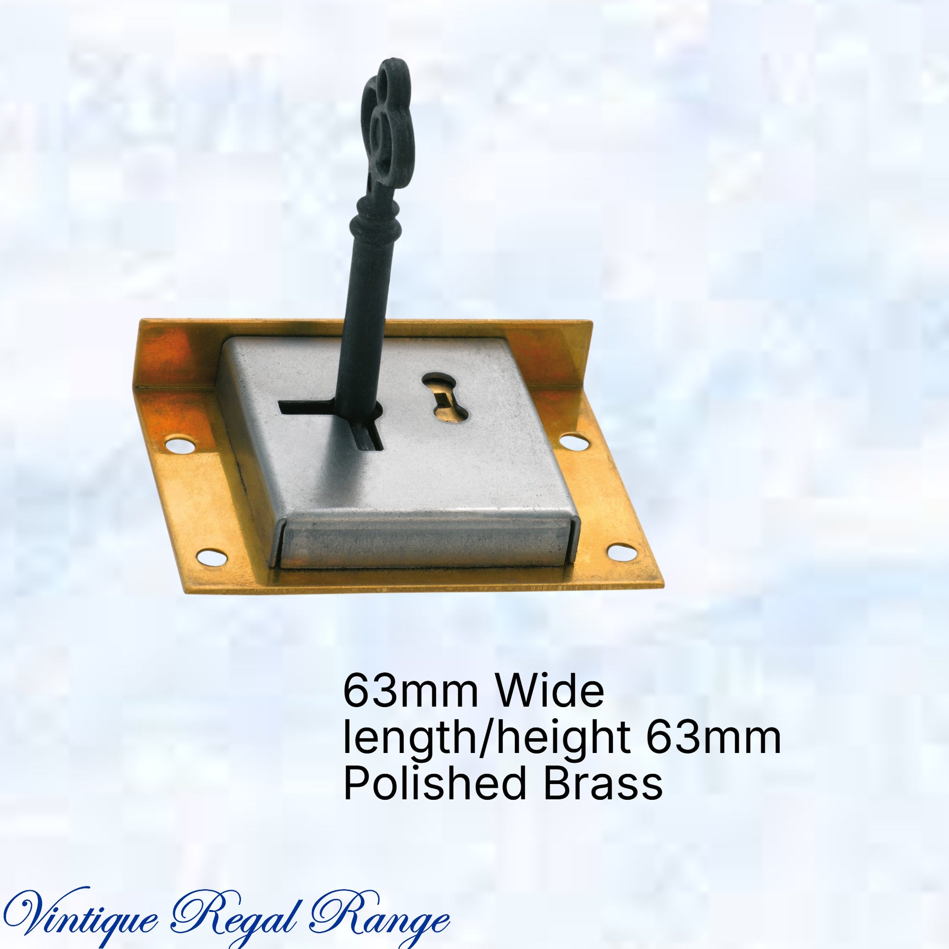 Antique polished brass Drawer Lock & Key 63W x 48mmH