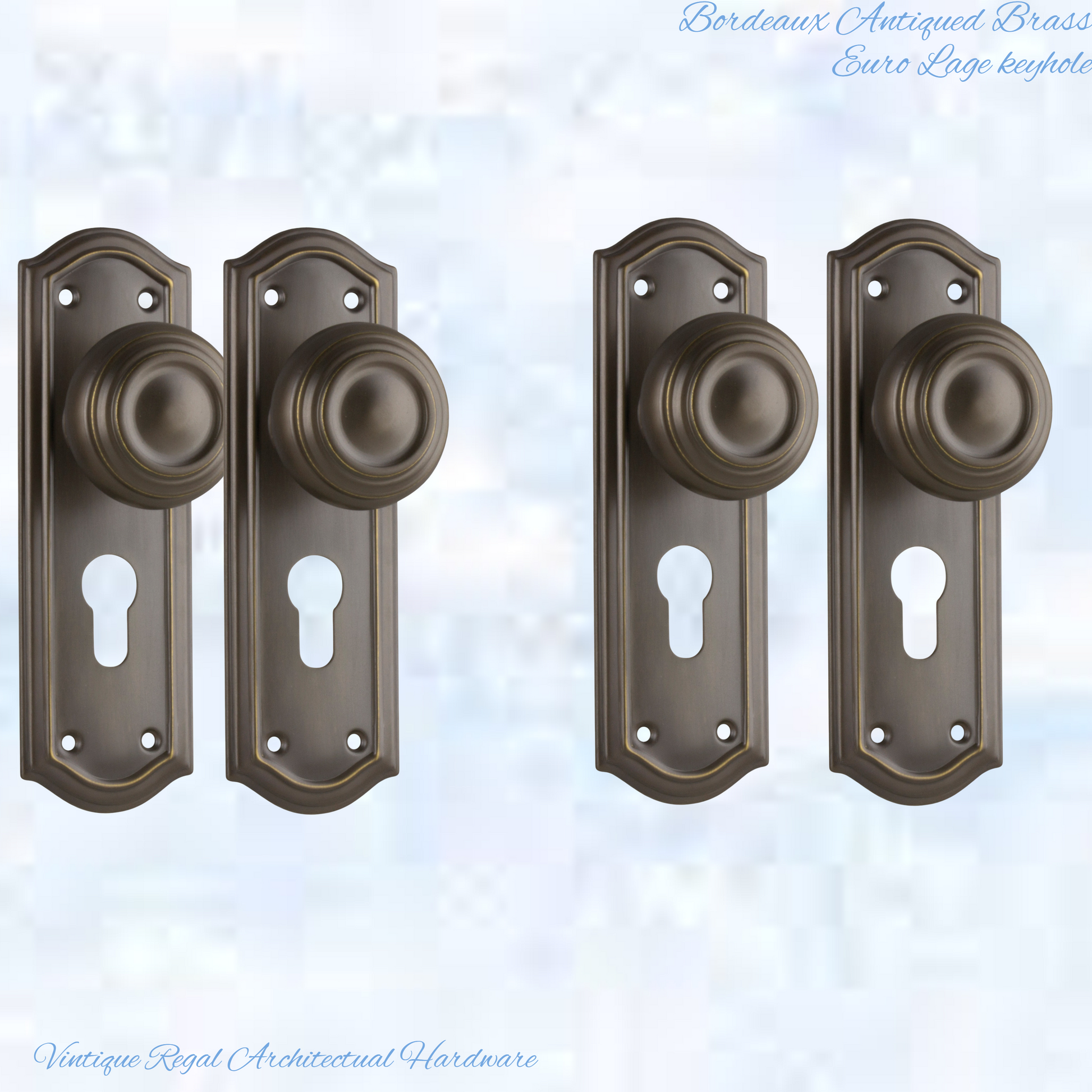 Vintique's Regal-designed Brass Bordeaux Round door Vintage door knob handles with a fixed backplate add a touch of Class to your home. Not only functional, strong with heavy duty beauty for your doors.