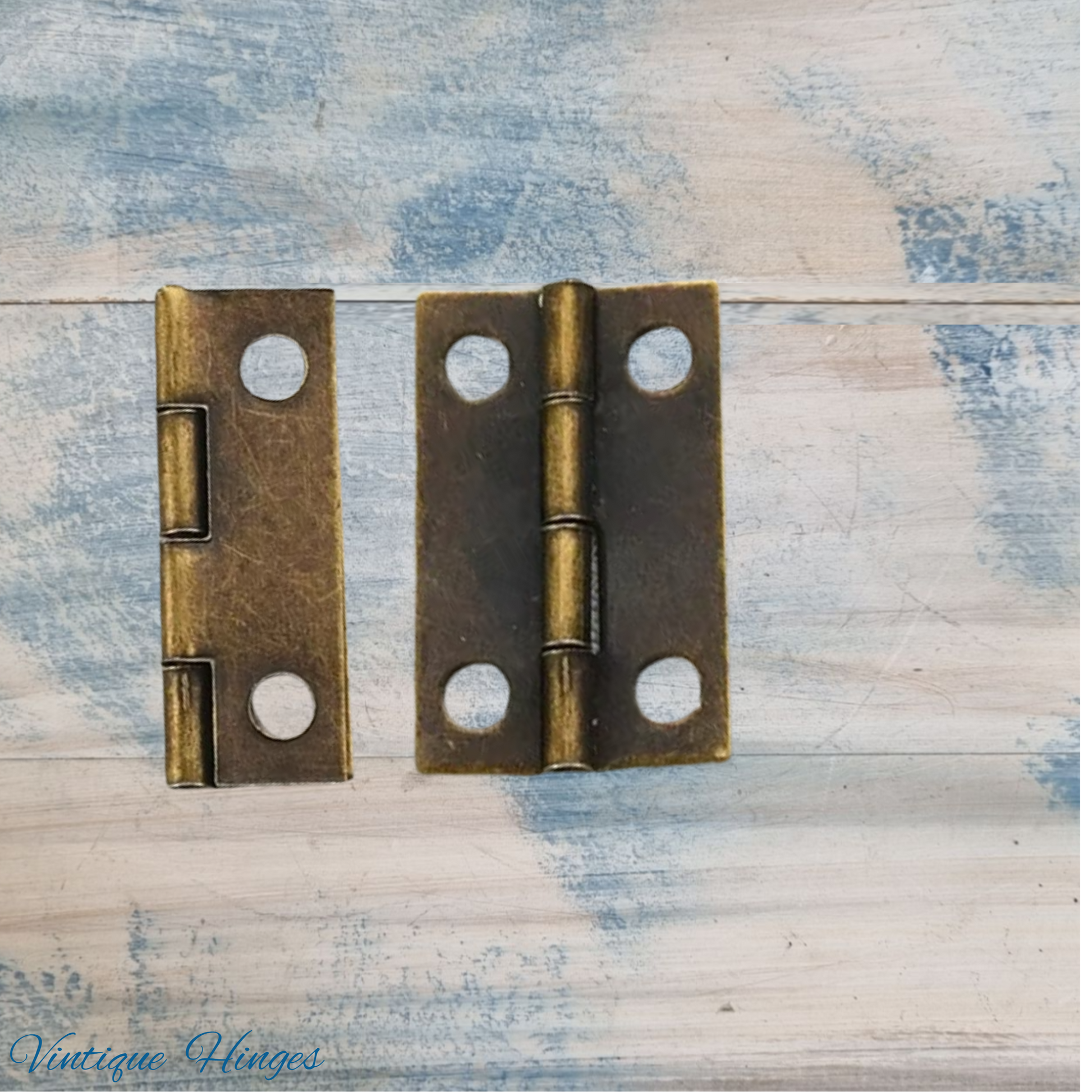 Vintique Vintage hardware with small butt hinges are often used for craft and hobby applications in woodworking such as dollhouses, jewelry boxes, cigar boxes, small chests and boxes, and other small wooden creations. Beyond craft hinges, small hinges are also used as cabinet hinges and furniture hinges.