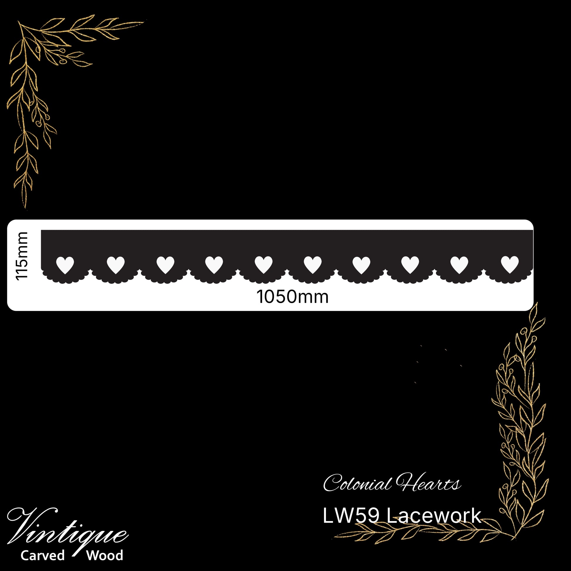 Wooden Lacework Border-Colonial Hearts (LW59) 115mm x 1050mm